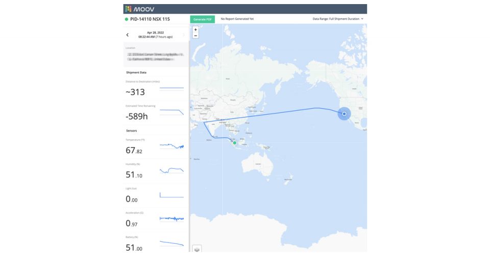 To assist with end-to-end visibility, the newly launched Moov Portal empowers clients with real-time tracking of their equipment purchases in cargo categories such as location, temperature, humidity and light exposure.