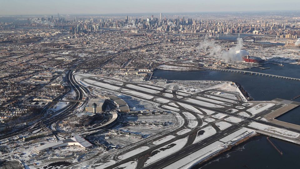 An aerial view taken in 2018 of New York’s La Guardia Airport, one of several in the U.S. considered at risk for coastal flooding, according to a recent study.