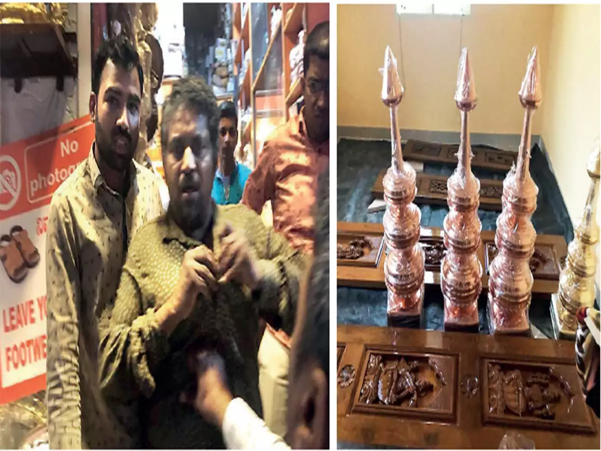 Shivanegowda, a resident of Konankunte is a secretary of the newly constructed Sri Maramma Devi Devasthana constructed at Sri Maramma Devi Devasthana at Haroshivanahalli in Kanakapura. As the temple’s inauguration and Kumbabhisheka is on February 6 and 7, Shivanegowda and his friend Rajanna set out to shop some sculptures that were a part of temple exteriors and designs. They approached the Mandoth Sales Corporation on BVK Iyengar Road in Chickpet where they found the sculptures and other accessories.