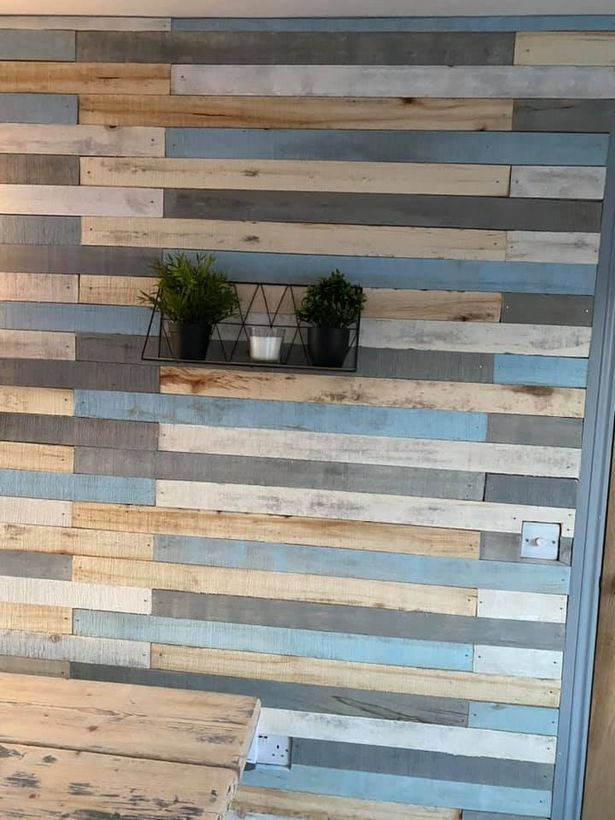 A mum with a knack for DIY used old pallets to create a stunning feature wall in her dining area.