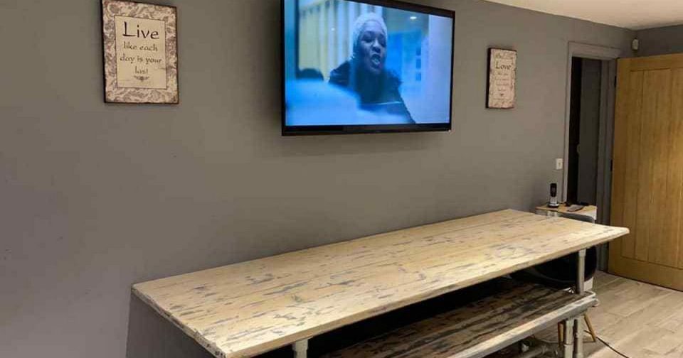 A mum with a knack for DIY used old pallets to create a stunning feature wall in her dining area.