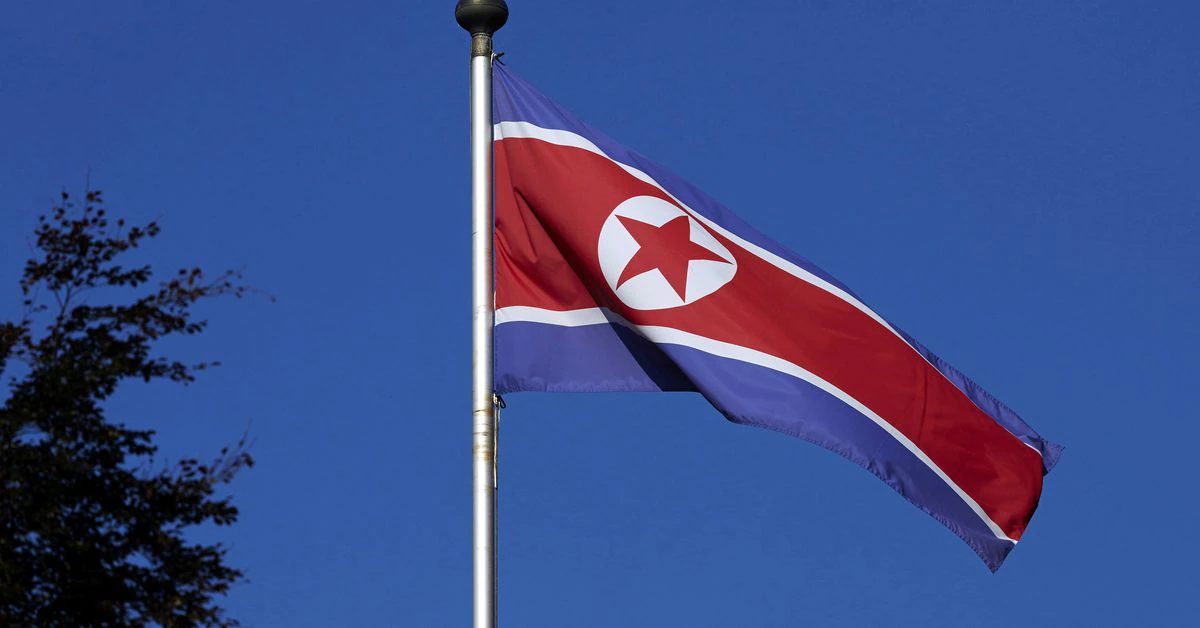 FILE PHOTO – A North Korean flag flies on a mast at the Permanent Mission of North Korea in Geneva October 2, 2014. REUTERS/Denis Balibouse/File Picture