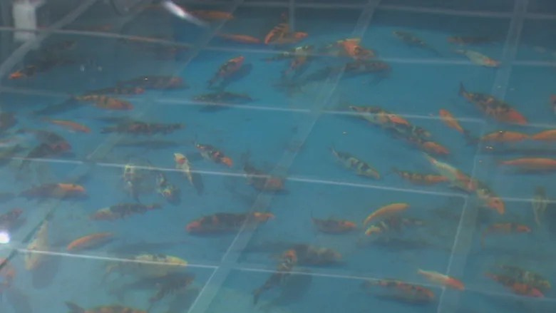 These koi fish provide nutrients for some of the cannabis plants grown at Aqualitas. (Paul Palmeter/CBC)
