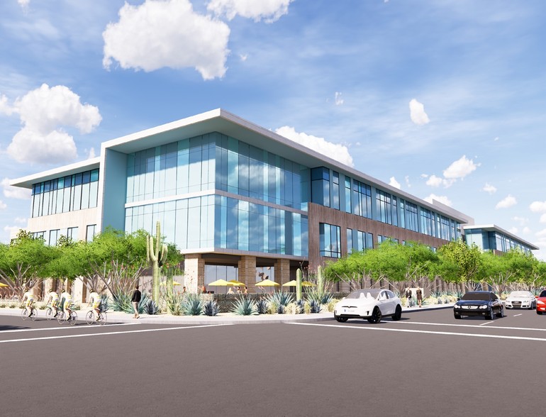 Project Description: Axis Raintree is a 175,000 square-foot, three-story, Class A speculative office building with a structured garage, located on an 8.24-acre site in Scottsdale. The office building will feature 16’ deck-to-deck volume, expansive glazing, large efficient floorplates, several tenant amenity areas, structured parking, and an outstanding view of the McDowell Mountains. This speculative office space is the first, Class A building to be delivered in the Scottsdale Airpark submarket since the completion of Scottsdale Quarter Block M in 2015.