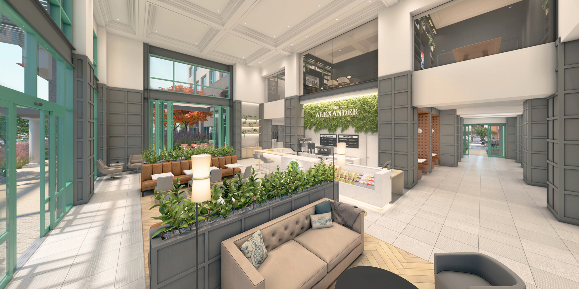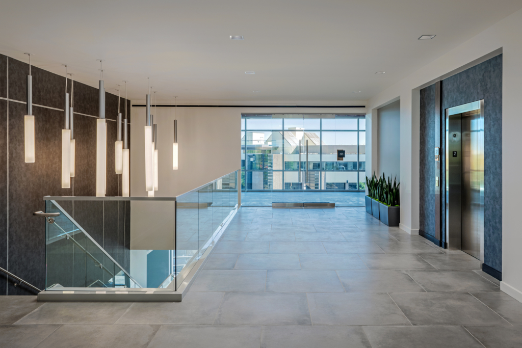 Project Description: The Alexander is a unique, upscale and experiential office community located in the heart of downtown Chandler. The building is being transformed from an outdated mid-rise office building into a next-generation project capitalizing on a vibrant downtown. At completion, the 112,000 SF, five-story building will deliver highly efficient/design-forward workspaces, a hospitality-inspired lobby and lounge area, 60-seat training center, mother’s room, Kaleidoscope Juice & Coffee Bar, outdoor activity/game area, library-themed workspace and billiards room. The wellness center includes cardio and yoga rooms, spa-inspired showers and outdoor relaxation area.