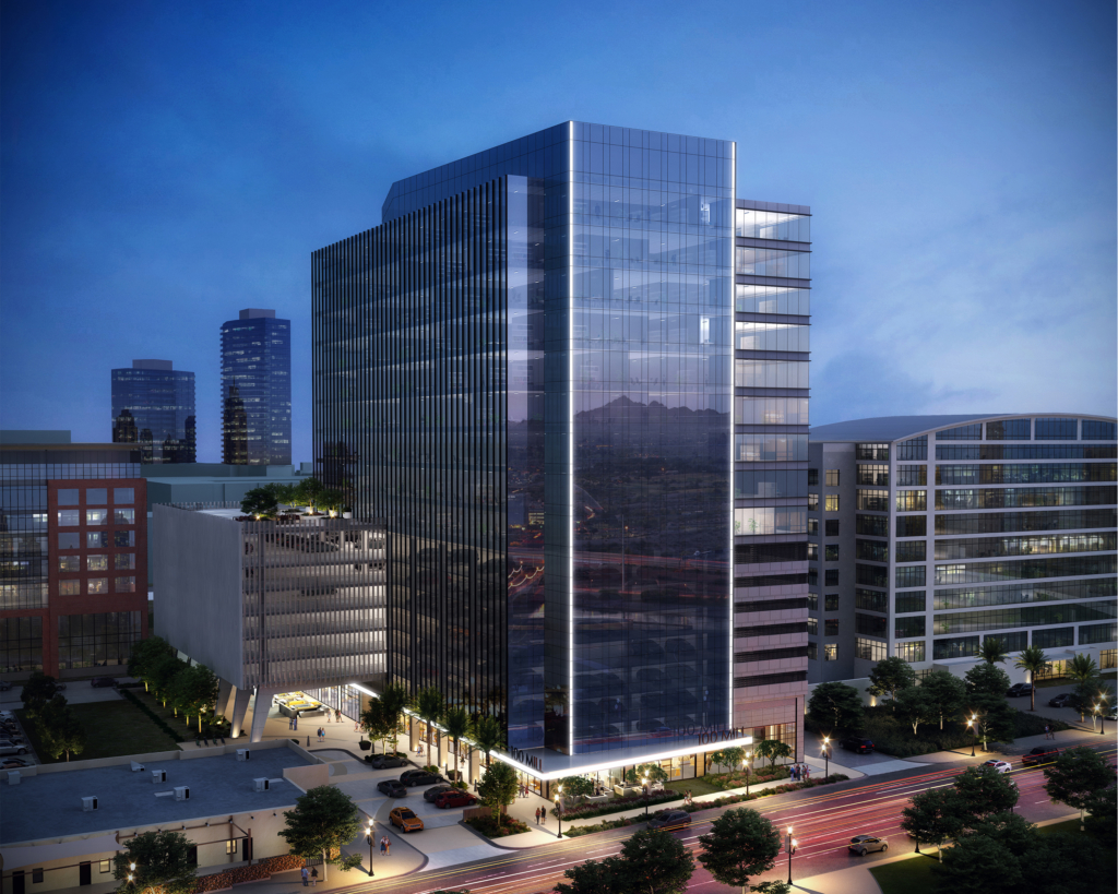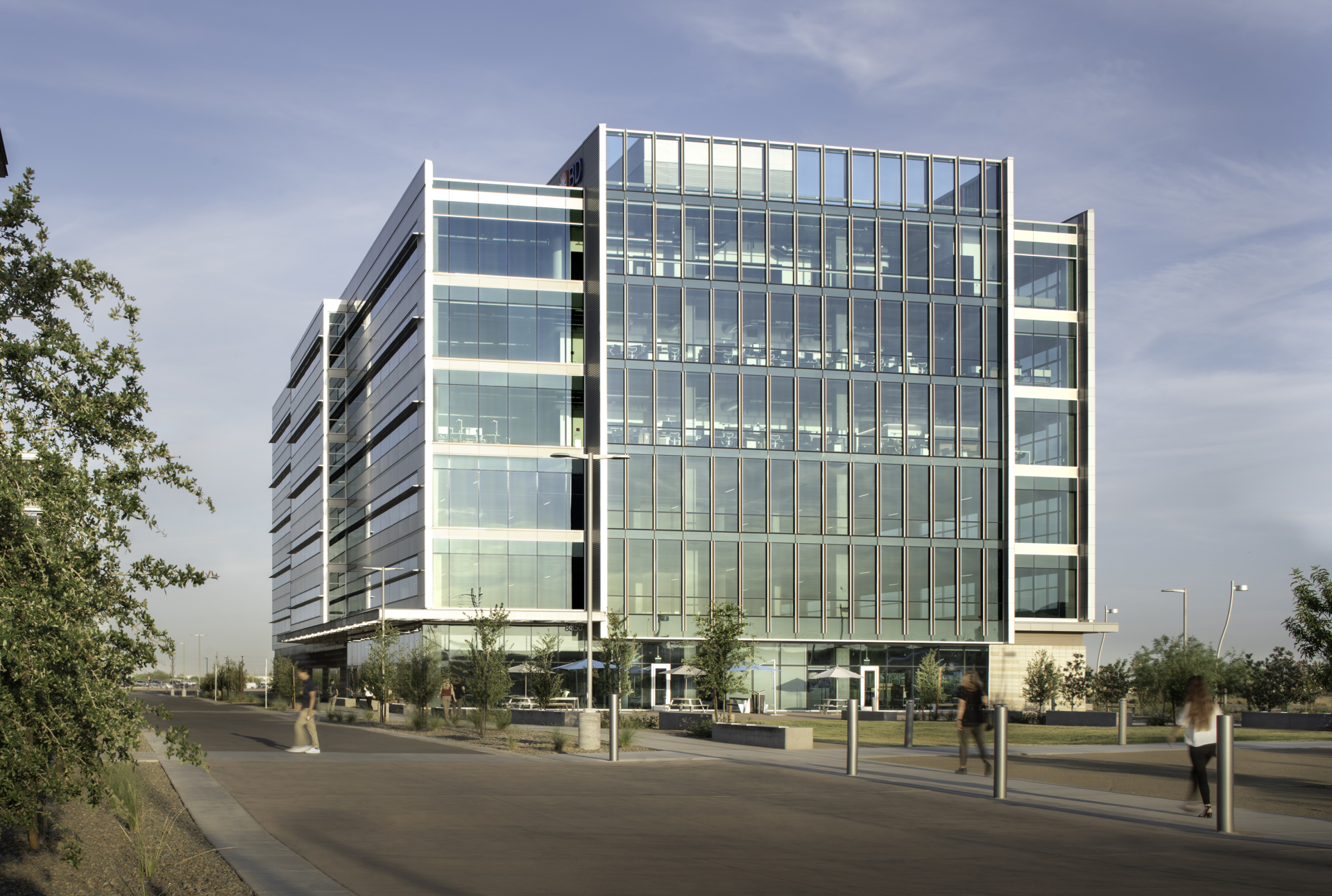 Project Description: Lincoln Property Company and Harvard Investments are nearing completion on the first of four Class A office buildings (ultimately totaling 1.35 million SF) at Union – a new employment centerpiece at the confluence of Scottsdale, Tempe and Mesa. In the heart of Riverview District, Union is purposefully built to attract premier Fortune 500-level companies with features including a sleek glass exterior, modern lobby, large floor plates, outdoor balconies and vision glass providing sweeping city and mountain views, and the adjacent Riverview Park and Lake. Union’s built environment encourages connectivity and walkability via a lush pedestrian plaza and paths. The project is minutes from two full diamond freeway interchanges, millions of square feet of premier shopping/dining/entertainment/sports, as well as ASU and Sky Harbor.