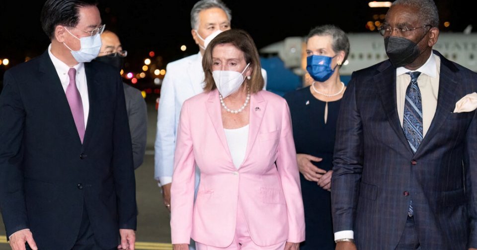 TAIPEI, Taiwan — The news media and crowds gathered at the Taipei airport on Tuesday to watch the arrival of Speaker Nancy Pelosi, the highest-level United States official to visit Taiwan in 25 years.