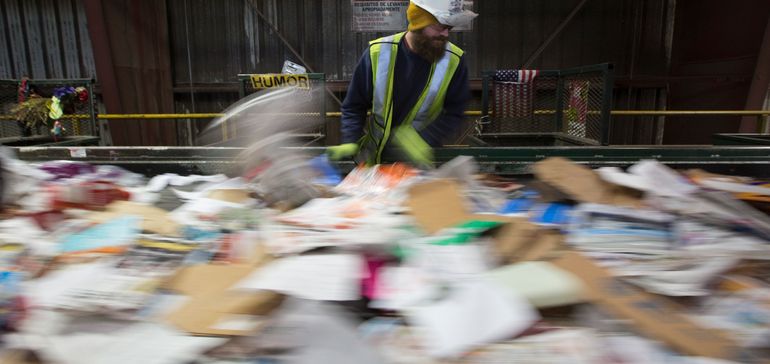 In 2018, China made up about half of the global demand for many recycled commodities. One immediate effect of National Sword was a traffic jam for mixed paper, which temporarily overflowed in U.S. markets. For a time, some MRFs had to stockpile the material, or even bury it.
