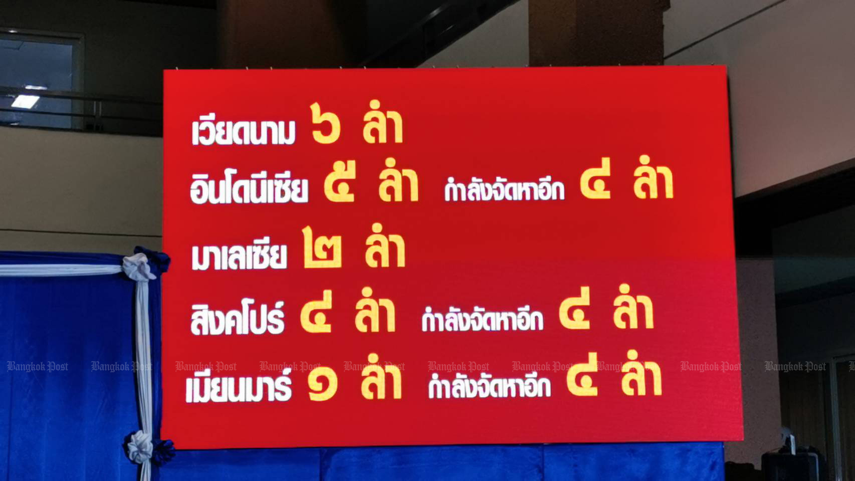 A presentation by the navy shows Vietnam has six submarines, Indonesia has five, Malaysia has two, Singapore has four and Myanmar has one. (Photo: Wassana Nanuam)