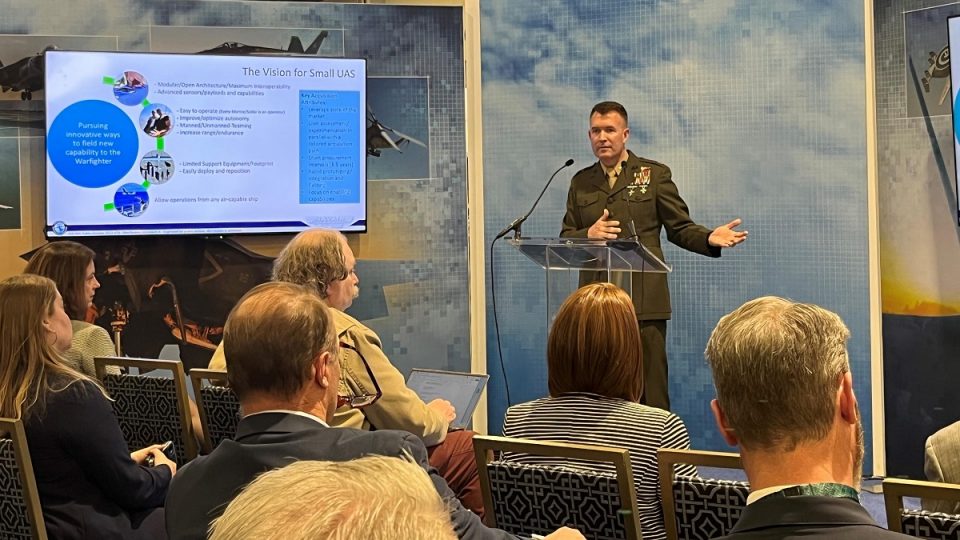 NATIONAL HARBOR, Md.– Col. Victor Argobright, Navy and Marine Corps Small Tactical Unmanned Aircraft Systems (UAS) program office (PMA-263) program manager, shared a new vision for small UAS procurement and employment during the Navy League’s Sea-Air-Space Symposium, on April 4.