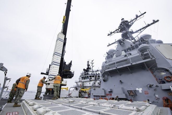 It’s unclear if the Navy would conduct an open ocean, at-sea reloading of a ship’s VLS. “They’re working out the after-action reports, and there will be a determination” at some point, Robertson said. He declined to speculate when that might occur or with which mix of ships and support vessels.