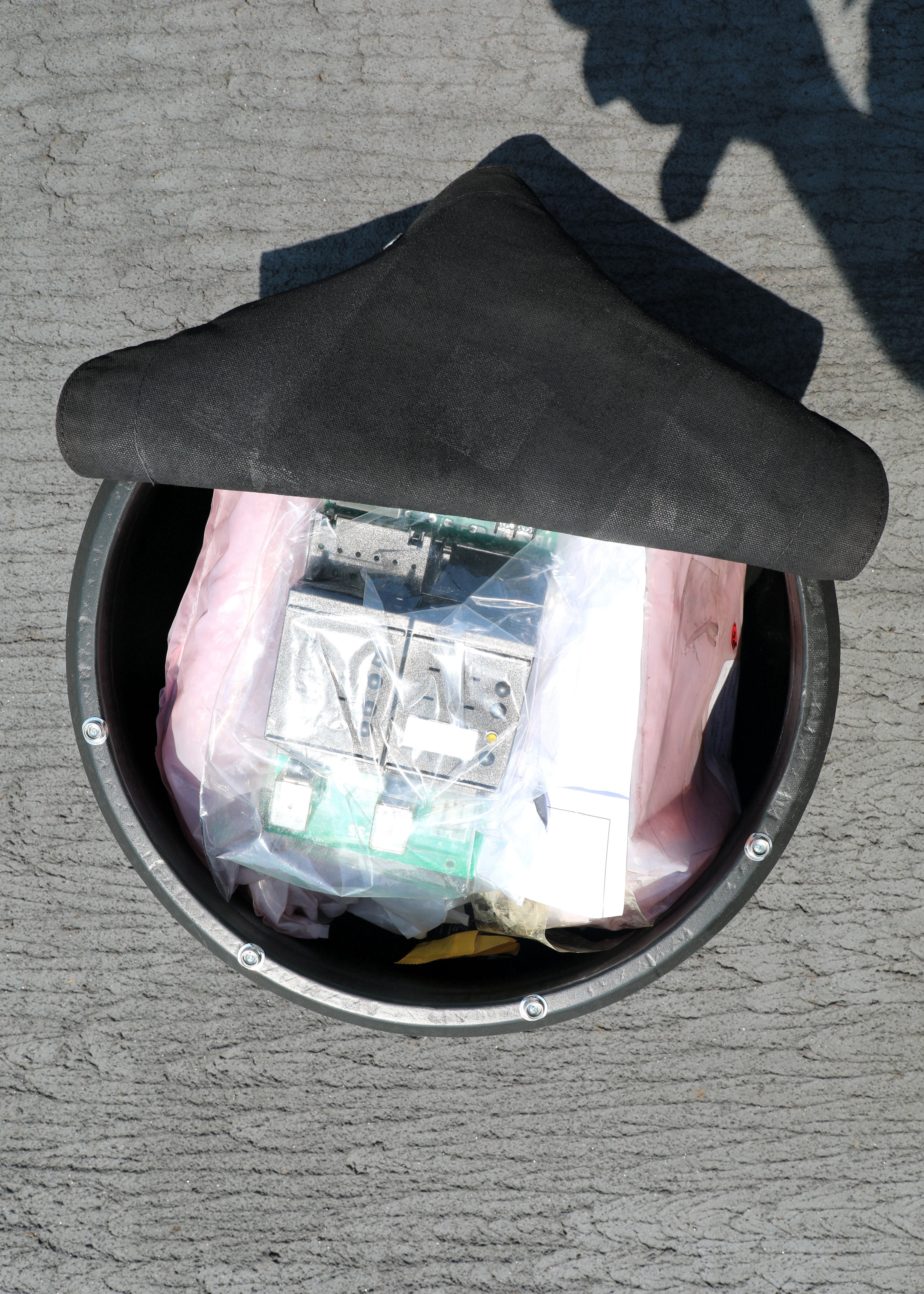 A view of the removable cargo hold from the unmanned vehicle component of the U.S. Navy’s Blue Water logistics Unmanned Aerial System (UAS). A team of contracted civilian UAS specialists from the Naval Air Warfare Center Aircraft Division’s (NAWCAD) UX-24 Unmanned Test Squadron, flew the prototype from the flight deck of Military Sealift Command’s fleet replenishment oiler USNS Joshua Humphreys (T-AO-188), while the ship was at sea in the Atlantic Ocean, July 16, 2021. US Navy Photo