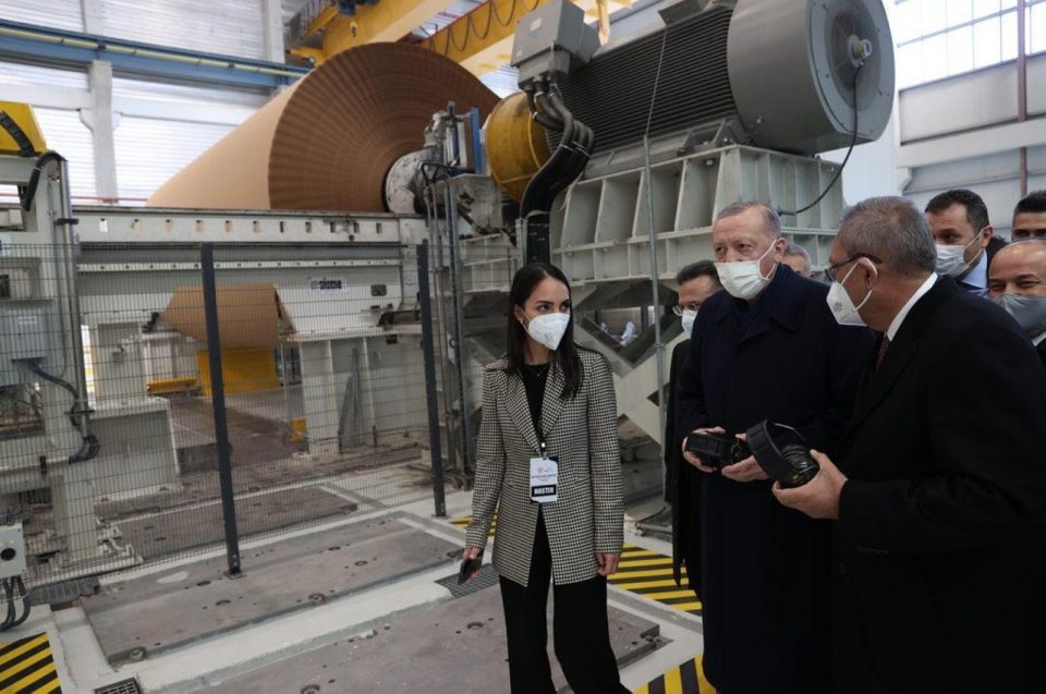 The president dubbed the factory as the biggest production facility in Turkey and Europe that will produce kraft liner, angular white test liner and white kraft liner papers used in many fields.