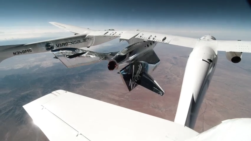 Virgin Galactic’s VSS Unity releases from VMS Eve and then ignites into space over Spaceport America, New Mexico, on Saturday, May 22, 2021.