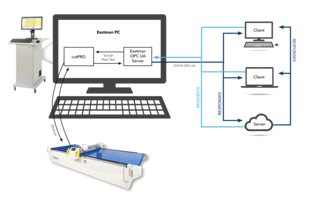 Eastman Machine Company announces addition of the OPC UA (Open Platform Communications United Architecture) server to its catalog of software applications. The OPC UA server will facilitate intelligent networking between equipment in a production environment and is compatible with Eastman’s S135 low-ply static, C135 low-ply conveyor, and Talon multi-ply cutting machines.