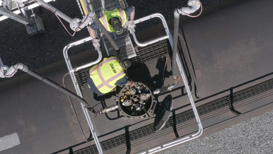 In a rail-supplied propane terminal, product primarily sourced from shale plays like the Marcellus, Permian and Eagle Ford is offloaded from railcars using compressors, stored and then loaded via pumps into trucks that transport the product to bulk plants, which in turn load local vehicles like bobtails.