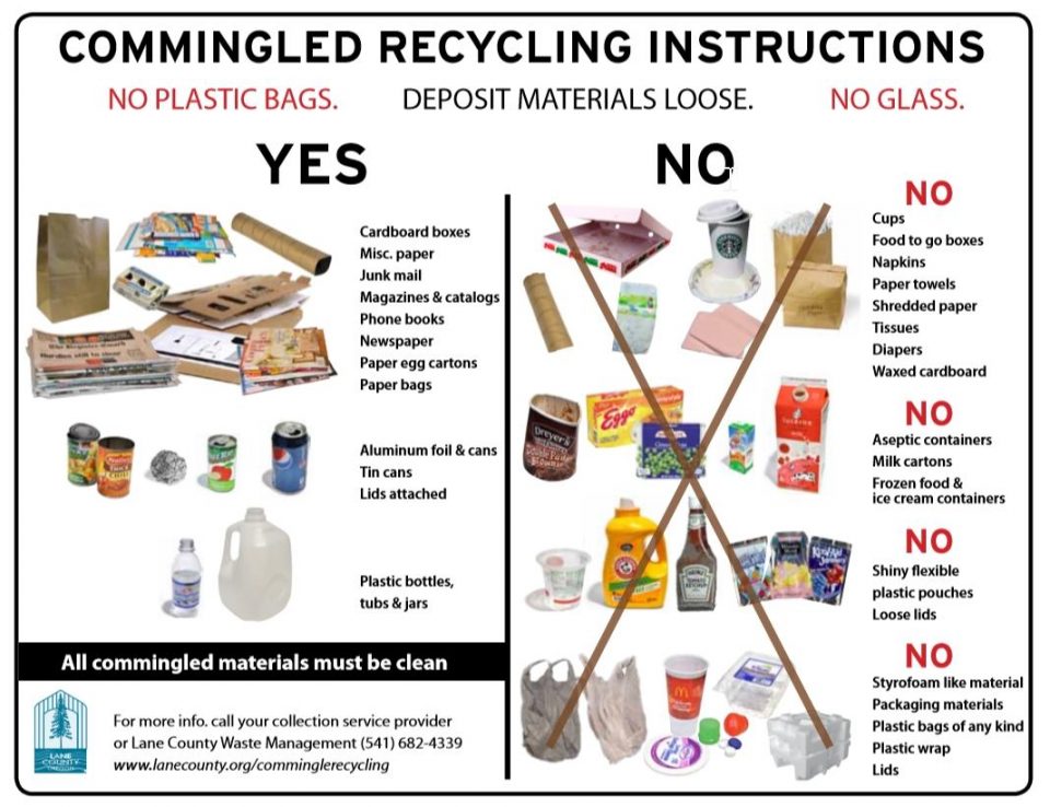 The pilot program, available for property owners with five or more units using shared garbage collection, provides decals for waste bins labeling what can be recycled, as well as guides which can be provided to tenants through handouts and posters, according to Lane County Waste Management.