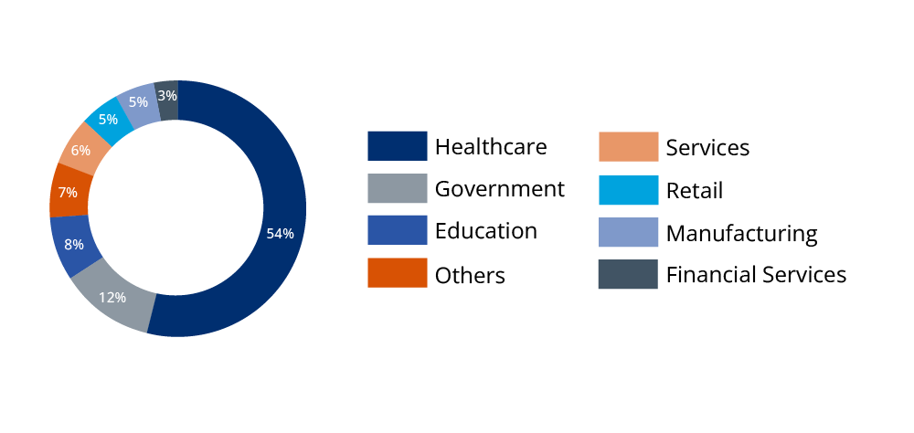 From a device deployment perspective, again we see that more than one-half (54%) of the customers with devices running Axeda are in the healthcare sector.
