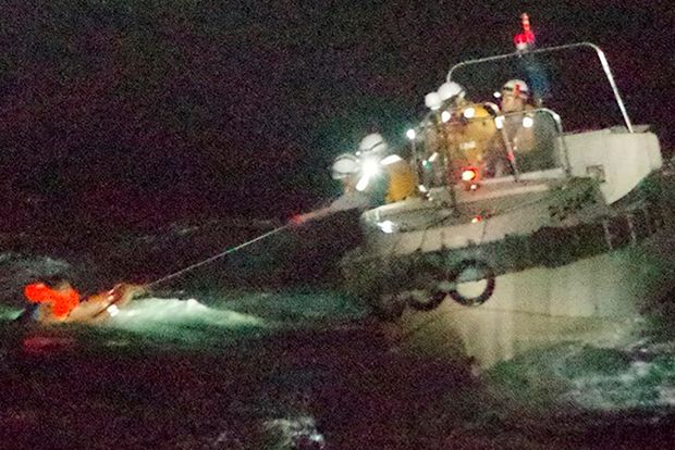 Japan’s coast guard rescuing a crew member Wednesday. A total of 43 people were on the ship.