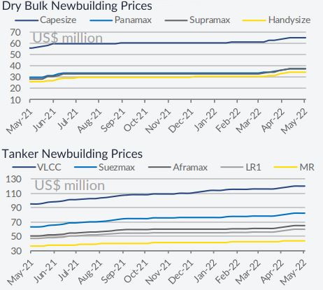 The shipbuilding market could soon start to pick, as China’s major cities are emerging from the lockdowns of the previous weeks. In its latest weekly report, shipbroker Allied noted that “the newbuilding market may well be slowly on the verge of a shift , with the lockdown measures in Shanghai about to end this week and many predicting that this event may bring about an onset of intense NB activity. This coupled with the positive seasonal effect brought about every two years during the Posidonia exhibition in Greece, could see the first half of June with an increased level of new orders coming to light. Already the sentiment in the market appears positive as this week’s activity was held on a vivid tone. Unlike last week, a fair share of the orders that came to light were placed at Chinese shipyards with the LNG and Dry bulk sectors acting as the main market drivers at this point, while the contribution of containership units was stable for yet another week. Prices are still high, which has allowed shipyards to maintain their margins despite the pace of increases noted in shipbuilding costs. Given the still overall positive freight market performance noted across the main sectors, there is little deterrent faced right now from the side of owners when faced with these increased prices and longer delivery schedules”.