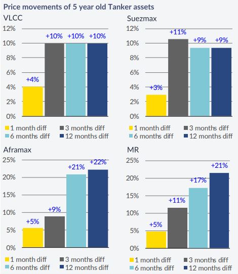 Meanwhile, in the S&P market, Allied said that “on the dry bulk side, SnP activity was kept at decent levels with most transactions taking place and focused on the smaller size segments in which we have seen less freight market volatility. In general, we see shipowners being intimidated by the fluctuations seen in earnings, with most still showing strong optimism for the market, a mere fact that has further boosted their appetite for acquisitions in short term. On the tanker side of things, the market’s performance appeared reduced, especially when seen in terms of the number of transactions that took place compared to the week prior. Buying interest covered the entire spectrum of the sector while there was increased focus being placed on the MRs and Aframaxes, which also recorded a significant increase in their earnings of late. Similarly, these segments have reached their 5-year highs in terms of values, while in the rest of the size segments, prices are holding at high levels as well”, the shipbroker concluded.