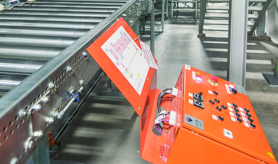 Newly received pallets from the plant are automatically conveyed to storage in the high-bay automated warehouse.