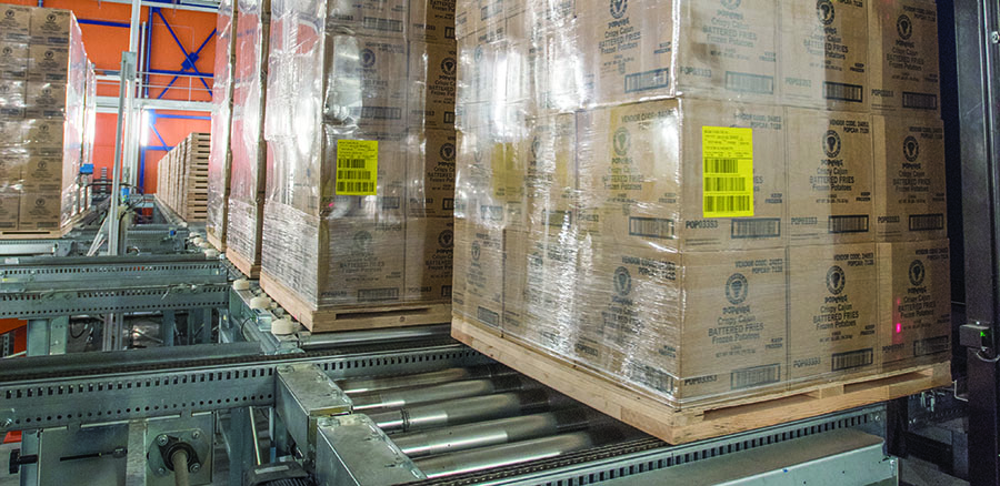 The facility, which operates at -5°F and with oxygen levels lowered to 16.5% for fire prevention, also features automated trailer loading and unloading, a conveyor system handling the primary transportation throughout the facility and automatic replenishment of the mixed-pallet picking area.