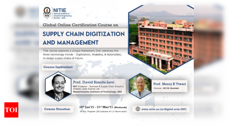The National Institute of Industrial Engineering (NITIE), Mumbai, the leading institute in India for Operations and Supply Chain Management, is all set to launch the ‘Global Online Certification Course on Supply Chain Digitization and Management’ in collaboration with Prof. David Simchi-Levi from the Massachusetts Institute of Technology (MIT), USA. The course will be inaugurated online on January 16th, 2021. Shri Suresh Prabhu, AICTE Chairman, Several Industry CEOs such as Dr. R.S. Sodhi, MD – GCMMF (Amul), Mr. Sanat Chattopadhyay, President – Merck, Mr. Pradeep Goyal, MD – Pradeep Metals and Joint Secretary, Ministry of Education – Dr. Madhu Ranjan along with Joint Financial Advisor to MEdu – Dr. Darshana Dabral has agreed to kindly grace the inaugural event. It is a 30-hour weekend-only course for students, faculty, Industry professionals to help them gain a better understanding of digital transformation in supply chains.