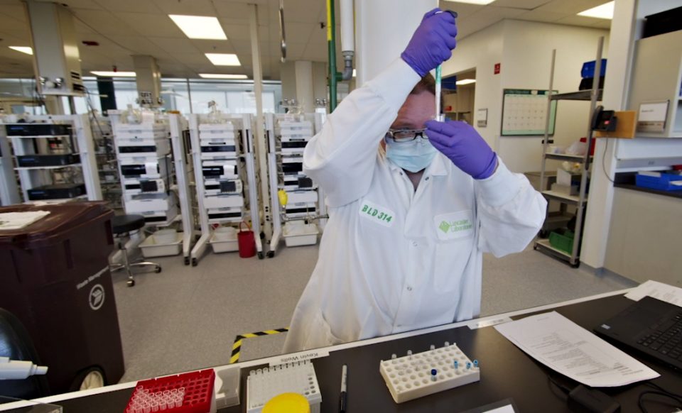 Eli Lilly and Co. employees prepare doses of the monoclonal antibody drug Bamlanivimab to help treat patients who are at high risk of progressing to severe COVID-19 disease and/or of being hospitalized. (Courtesy of Eli Lilly)
