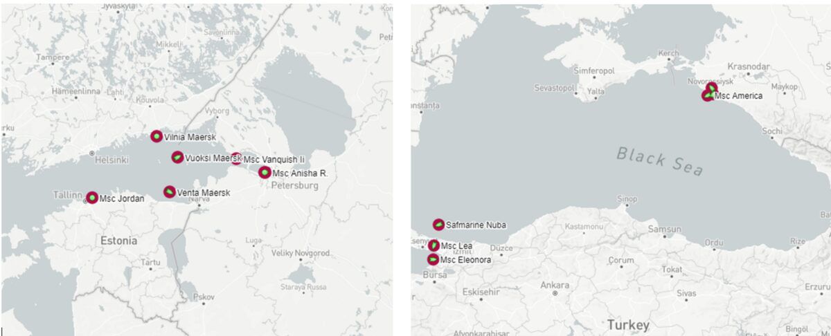 American Shipper used ship-tracking data from MarineTraffic to see which ships still call at Russia’s ports on the Black Sea and the Baltic.