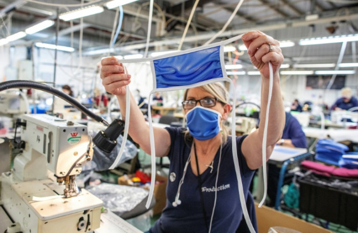 Production began at the O’Neills Strabane location on Wednesday after the fabrics were dyed, given antibacterial treatment and shipped from Dublin — where the firm is headquartered.