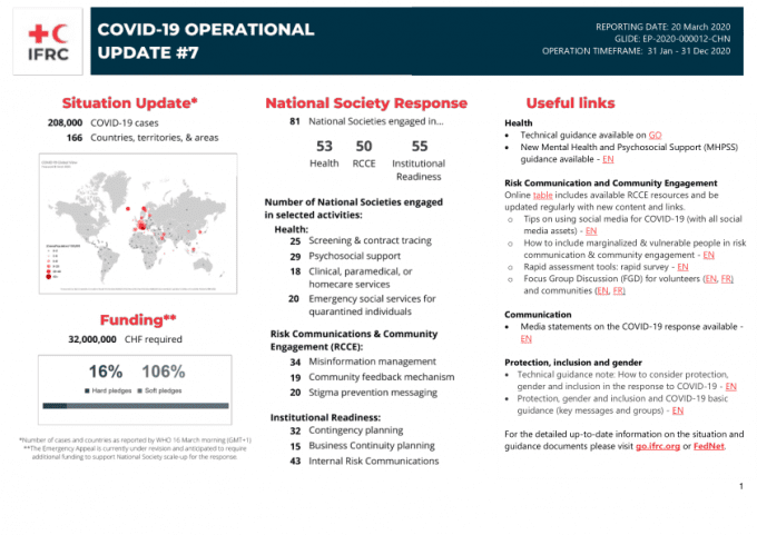 Key messages and a list of spokespersons are updated/shared regularly within IFRC, with ICRC and with National Society communication focal points. Media interest and coverage of Red Cross Red Crescent response remains high. Cross media assets for all National Societies have been created and are communicated across all IFRC social platforms, as part of the collective risk communication effort, to help our audiences understand ways to protect themselves and their loved ones, as well as showing the different aspects of the Red Cross Red Crescent response.