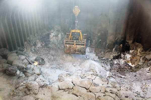 Under the new salvage plan, 1,500 tonnes of the ship’s cargo are being dumped into the sea. A trackhoe has been delivered to the ship and lowered into the hold to facilitate removal, and the work is already well under way.
