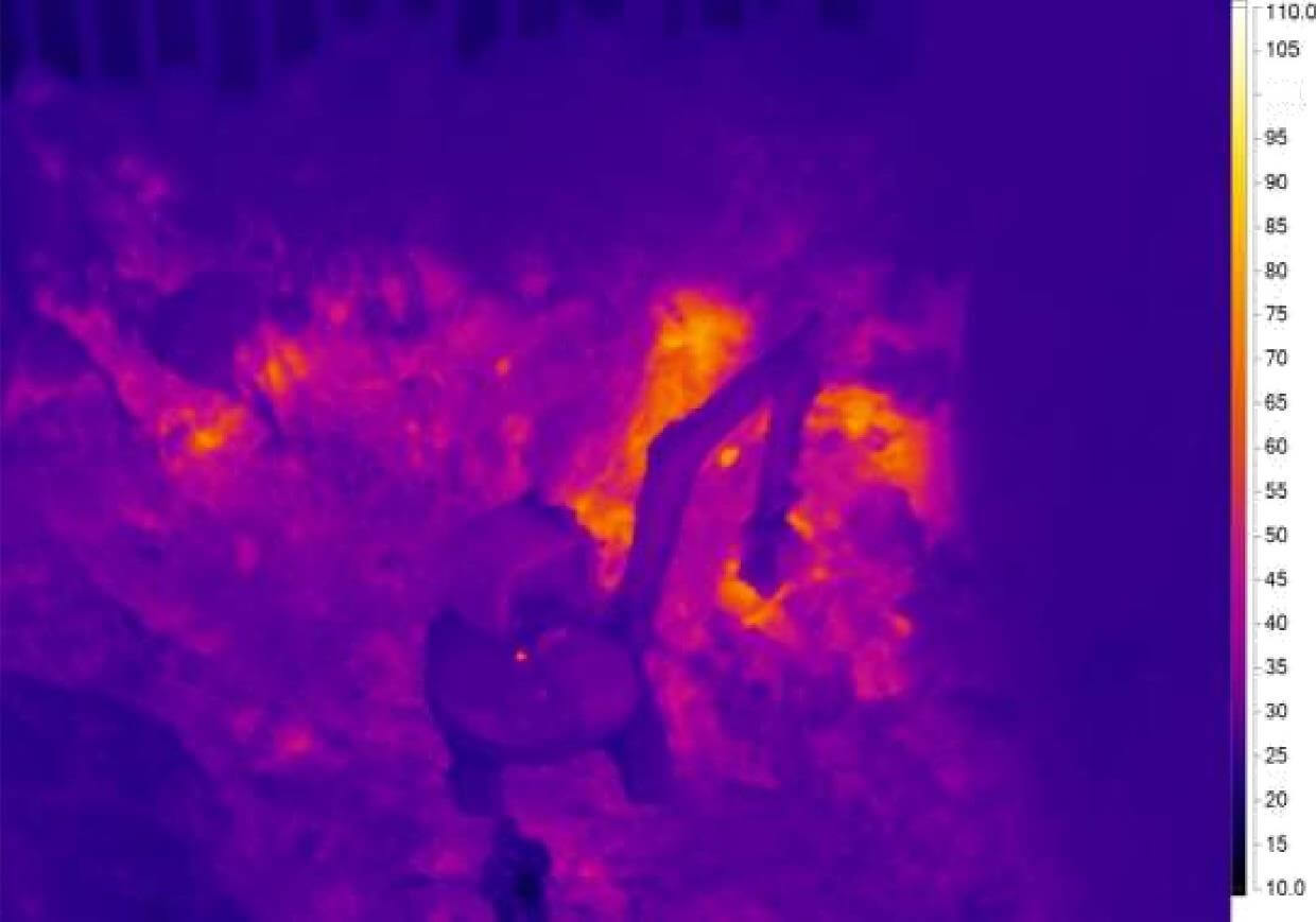 Visual (top) and infrared (bottom) imaging of an affected hold (SAMSA / Holling)