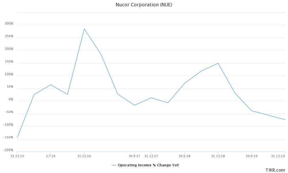 Nucor expects first quarter earnings to be higher than fourth quarter earnings of 2019. Earnings in the steel mills segment are expected to increase due to higher expected volumes. Nucor also expects a more stable pricing environment in 2020 after a severe inventory destocking that took place in 2019. On top of that, management expects an improvement in pricing for raw materials.