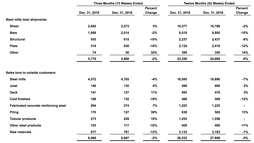 That said, total shipments from steel mills were down 2% in the fourth quarter. On a full-year basis, shipments were down 6%. Shipments to customers were down 3% with pretty much contraction in all major segments.