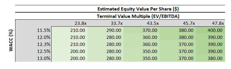 Nvidia Valuation Analysis (Author) Nvidia Sensitivity Analysis (Author)
