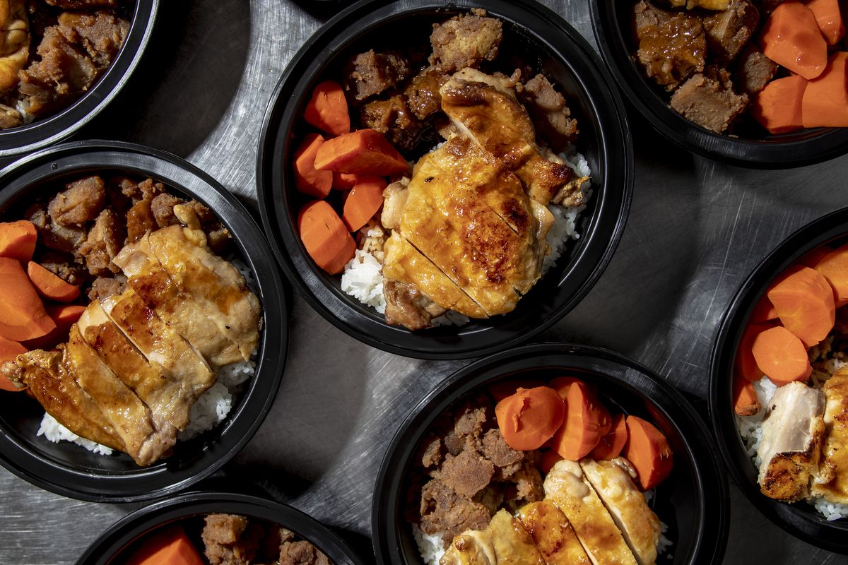 In a tightly clustered kitchen with two other people, Liu prepares bento boxes with roasted Savoy cabbage, yakitori tare sauce over rice, and sweet soy potatoes, topped with pan-seared chicken thigh. Thanks to food safety practices that involve blowing through boxes of polyurethane gloves and now face masks, line cooks are theoretically among the best suited to keeping themselves safe from COVID-19. Theoretically.