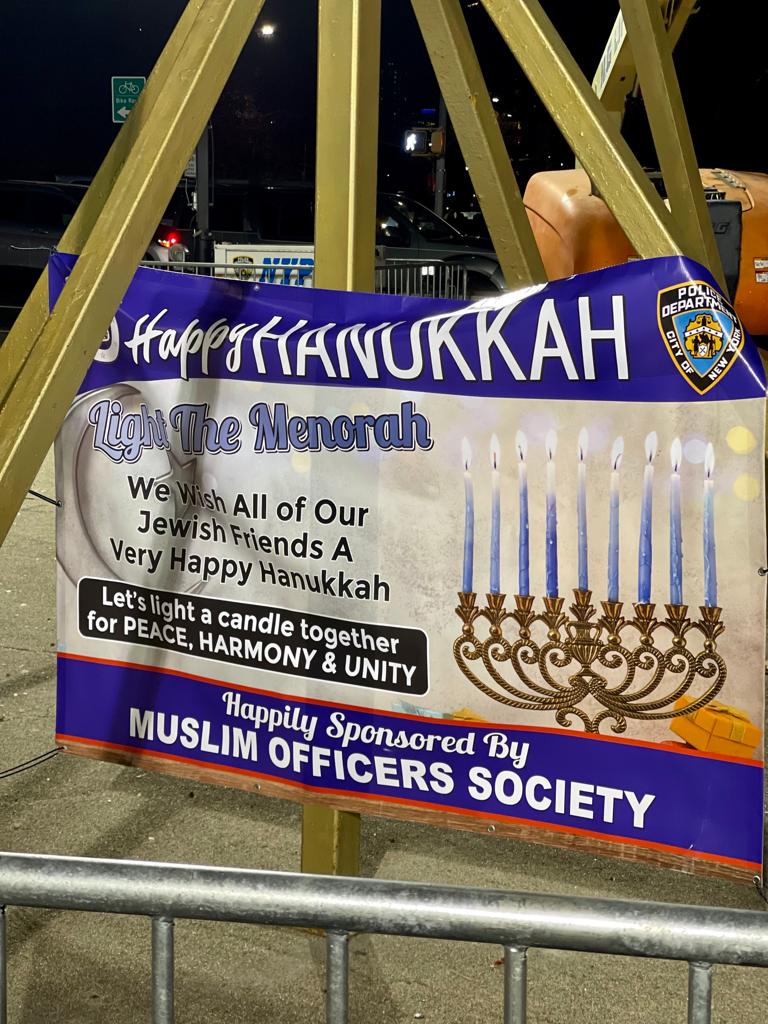 The Muslim Officers Society sponsored a banner for the base of the menorah that wished the Jewish community a happy Chanukah.