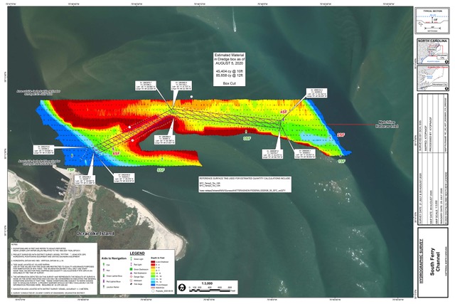 Other navigational challenges have worsened in Hatteras Inlet. One particularly persistent issue centered on a lump of sand in the South Ferry Channel, between Ocracoke South Dock and the Inlet Gorge, which is used as a shortcut by recreational and charter fishing vessels to get to and from the ocean.