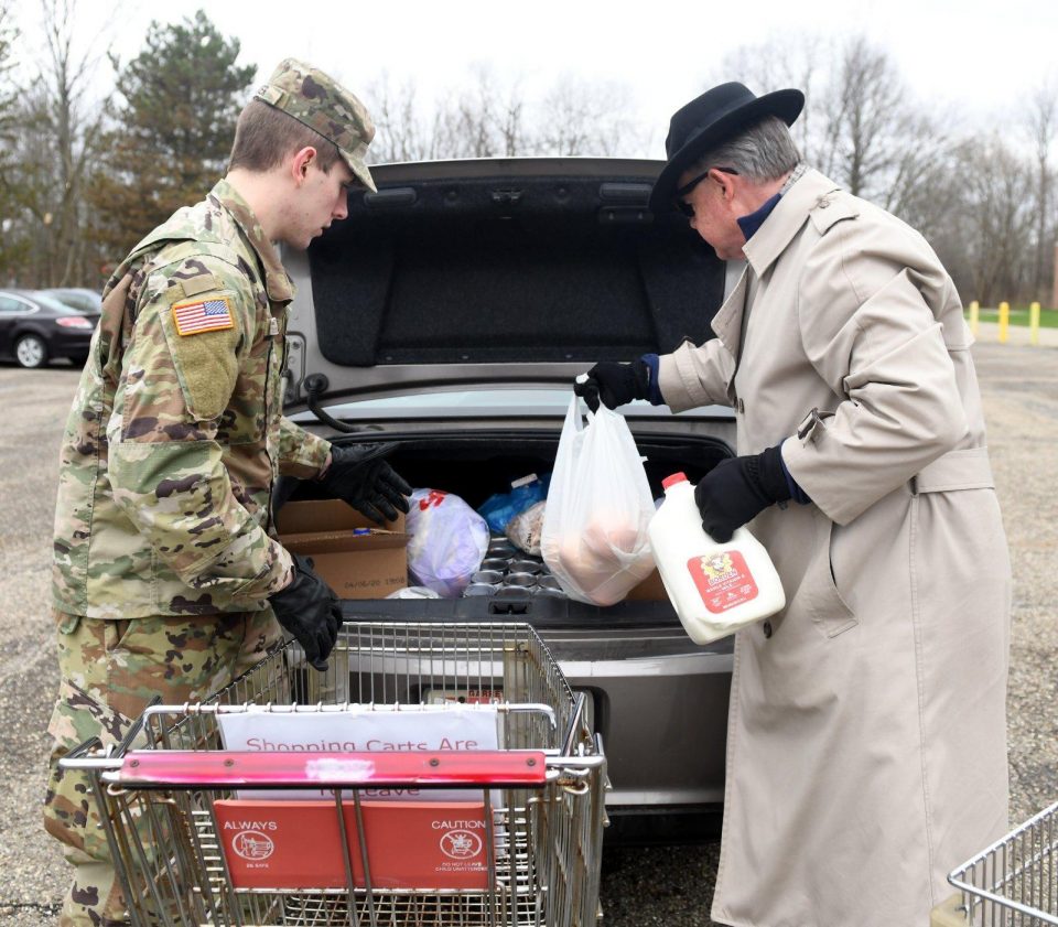 Kennedy said the guardsmen largely spent their time loading carts with donated groceries. The majority of the unit is assisting in operations at the Akron-Canton Regional Foodbank, however. Because of the situation regarding COVID-19, she said, the unit is filling the place of volunteers.