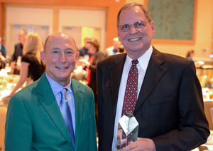 Kit Dietz (right) at the 2017 Convenience Distribution Association Industry Awards event with CDA Chairman Rob Sincavich (left) after Dietz was named “Dean of the Industry”