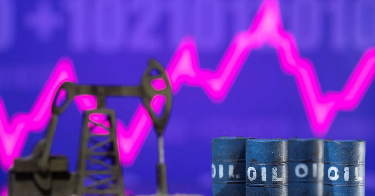 Models of oil barrels and a pump jack are displayed in front of a rising stock graph and “$100” in this illustration taken February 24, 2022. REUTERS/Dado Ruvic/Illustration