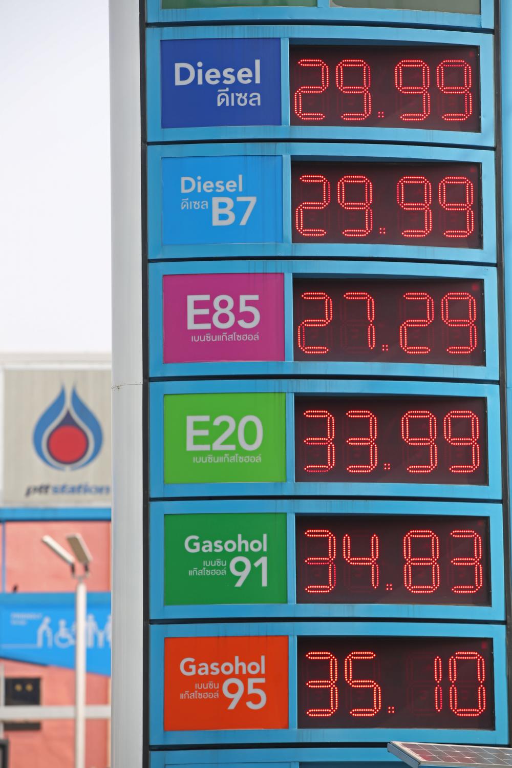 Fuel prices on display at a PTT station on Feb 8. Varuth Hirunyatheb