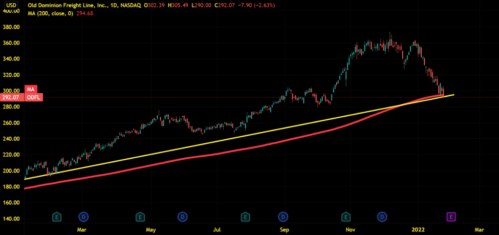From the technical analysis perspective, it seems as though Old Dominion Freight Line is preparing to recover from its recent hit as two prominent indicators are approached. Frankly, this is not the most promising factor in the recovery of share prices; instead, the conscience, dedicated, management that looks to continually improve the business is where I see value amid a supply chain calamity that has led other businesses to stumble. Besides help from a possible technical rebound, Old Dominion Freight Line is clearly a buy when understanding it should soon return to historic highs as growth from supply chain shortages is brought by its excellent management.