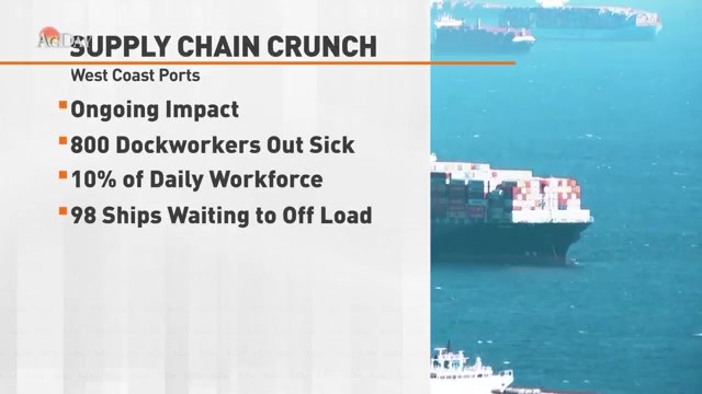 The Omicron variant is making the supply chain crunch worse. The Wall Street Journal reported that it is threatening operations at America’s busiest port. It says infection rates are rising rapidly among dockworkers at the ports of Los Angeles and Long Beach. The Pacific Maritime Association says about 800-dockworkers were out sick for COVID-related reasons at the start of this week. That represents about 10-percent of the roughly 8-thousand-person daily workforce.
