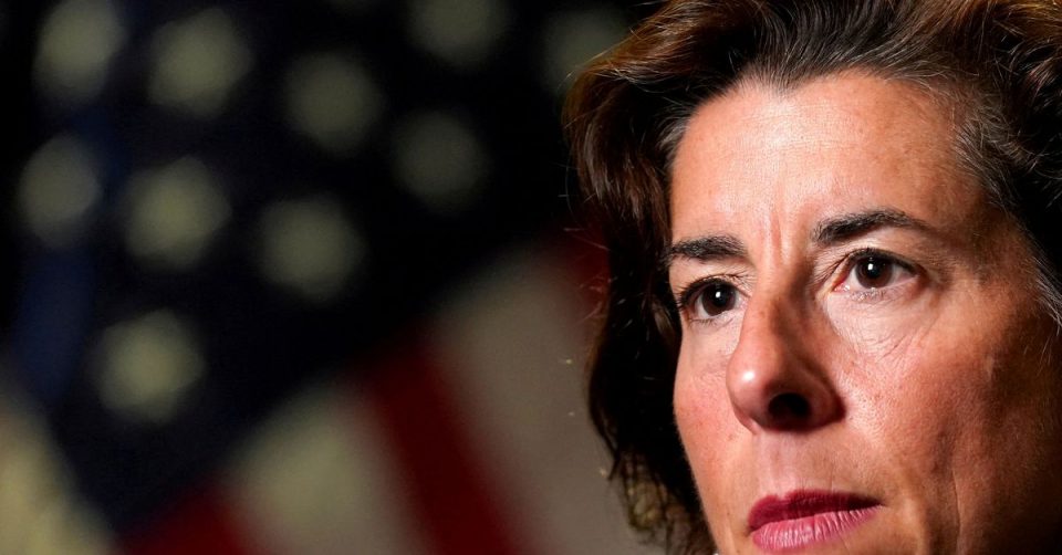 U.S. Commerce Secretary Gina Raimondo listens to a question during an interview with Reuters at the Department of Commerce in Washington U.S., September 23, 2021. REUTERS/Kevin Lamarque/File Photo