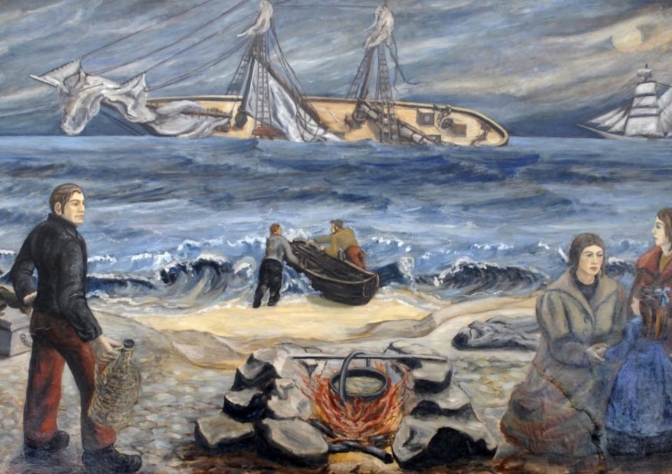 Lifeboats return to pick up the people still clinging to the parts of the ship still poking above the ocean’s surface. Cape Elizabeth residents open their homes to shelter the survivors. Later, scavengers pilfer cargo from the half-sunken wreck.