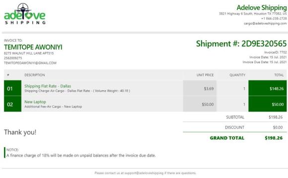 Awoniyi told FIJ that he had a relative take the product to Adelove for shipping after purchasing it for N789,260 from an online store in the United States.