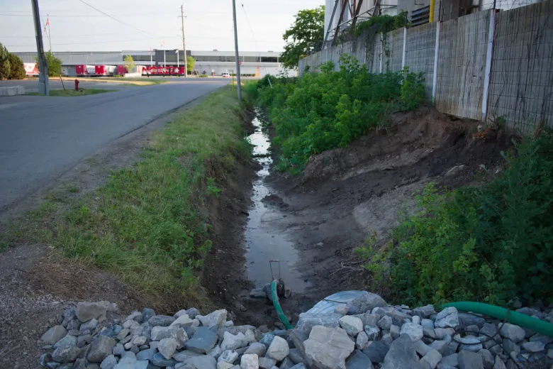 Bartek Ingredients said it only learned of the leak after the city installed a new culvert into a ditch along the property line. (Bobby Hristova/CBC)